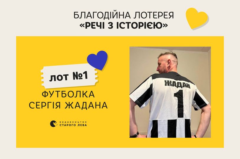 Перший лот, який анонсує ВСЛ — це футболка Сергія Жадана. У ній він грав у футбол за Літературну збірну України, був капітаном команди і стояв на воротах. Дісталася йому ця іменна річ у подарунок від команди суперника.
