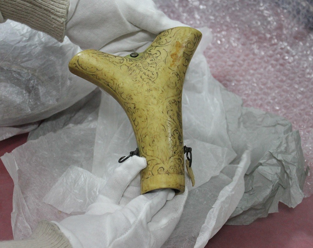 До місця зберігання приїхало 11 предметів. Це, зокрема, унікальна і єдина у подібному виконанні «сумочка-ташка» Х ст. з зображенням грифону (із с. Шестовиця), кремінна рушниця ХVІІ-ХVІІІ ст. з інкрустацією сріблом та коралами, кістяні порохівниці ХVІІ-ХVІІІ ст., кобза кобзаря Петра Кулика (1844-1928) з с. Волинка Сосницького повіту, столик ХІХ ст. Так, сумочку-ташку реставрувала команда на чолі з завідувачем відділу реставрації творів з металу Віктором Голубом.