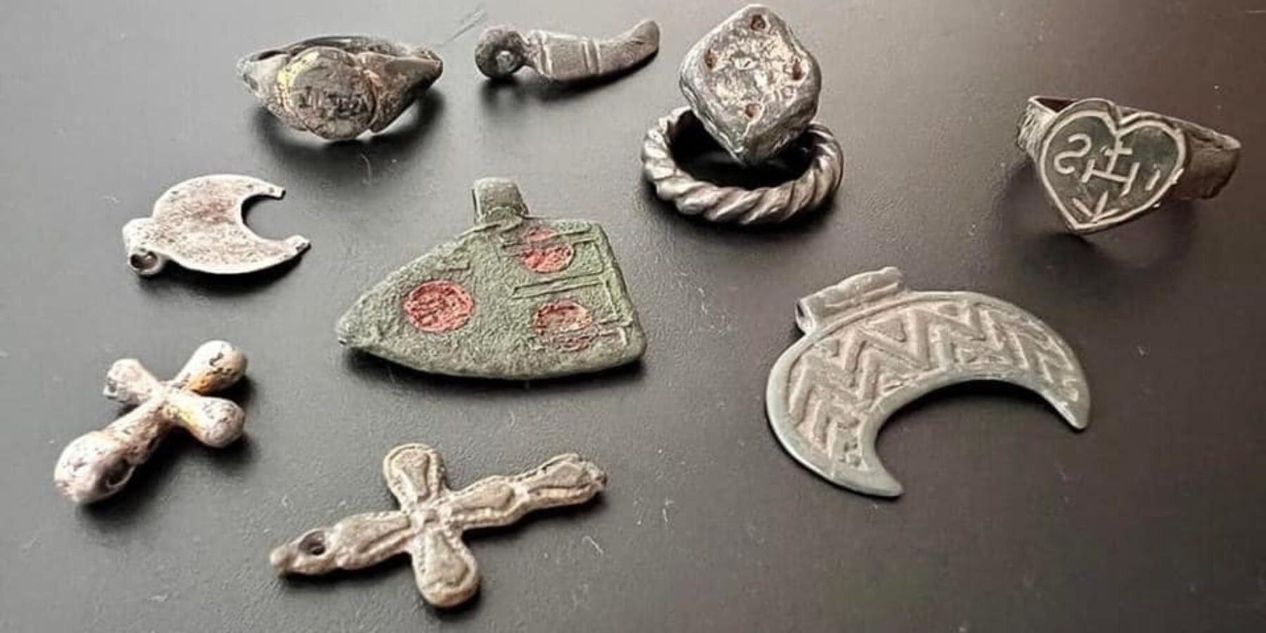 Десять металевих предметів з ознаками старовини були виявлені митниками під час митного контролю міжнародного поштового відправлення, яке прямувало з України (Чернігівщина, м. Прилуки) до Нідерландів. Задекларовані вони були як «одна каблучка».