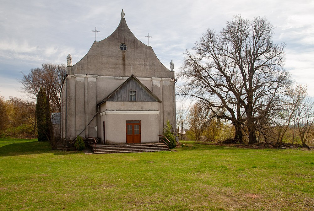Костел мав величезну прихрамову територію. На ній серед стихійного звалища і чагарників активний учасник проекту і Олег Федоров знайшов зруйнований постамент якоїсь великої сакральної скульптури.