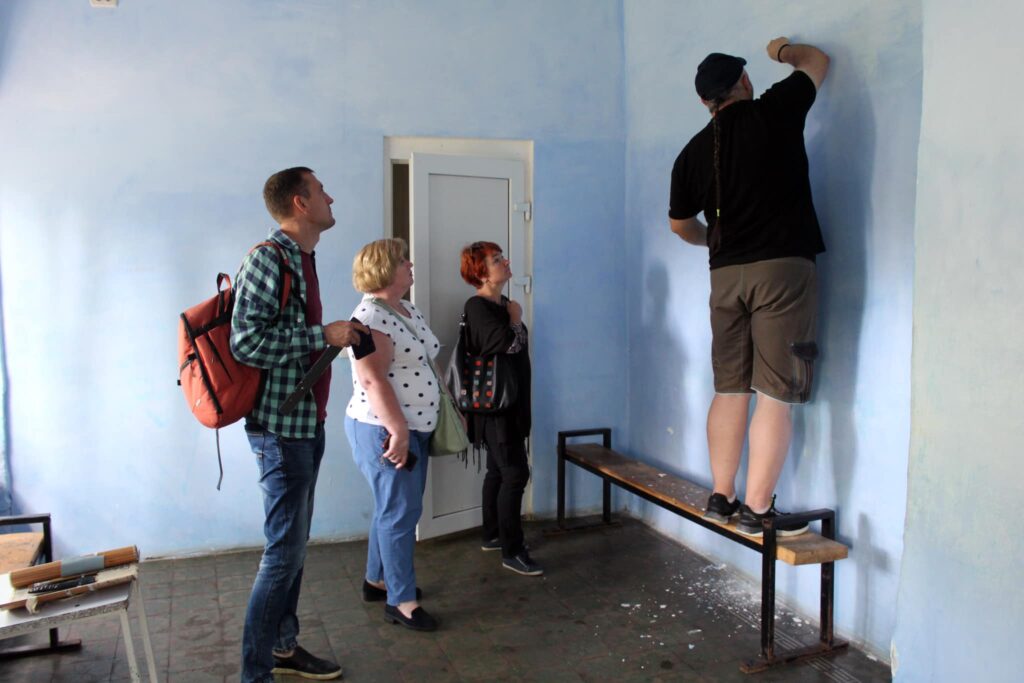 Відповідною інформацією зі Стефанією Едуардівною в перших числах грудня 2022 року безпосередньо поділився лікар-психіатр Михайло Гузяк. А вже 16 грудня учасників експедиції К-ПДІМЗ зустрів директор психоневрологічного інтернату Арцаблюк Андрій Петрович, який ознайомив із сучасним станом будівель палацового комплексу, специфікою роботи інтернату та вказав на виявлену під час ремонтних робіт кам’яну плиту, вкриту арабською в’яззю розташованою у лівому (південному) крилі палацу, де зараз – туалетна кімната. Під час ремонту останньої з-під шару штукатурки і було розчищено зазначену плиту. А далі на схід від неї під штукатуркою – сліди ще однієї забіленої плити, обмеженої високою гіпсовою рамкою.