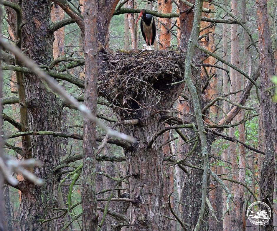 “Вчора наш орнітолог спільно з фахівцями Опачицького ПНДВ відвідали околиці села Камʼянка, де навесні було зафіксовано гніздо чорного лелеки. У гнізді, розташованому на висоті понад 3 метри, чітко було видно трьох пташенят”, – розповіли дослідники.