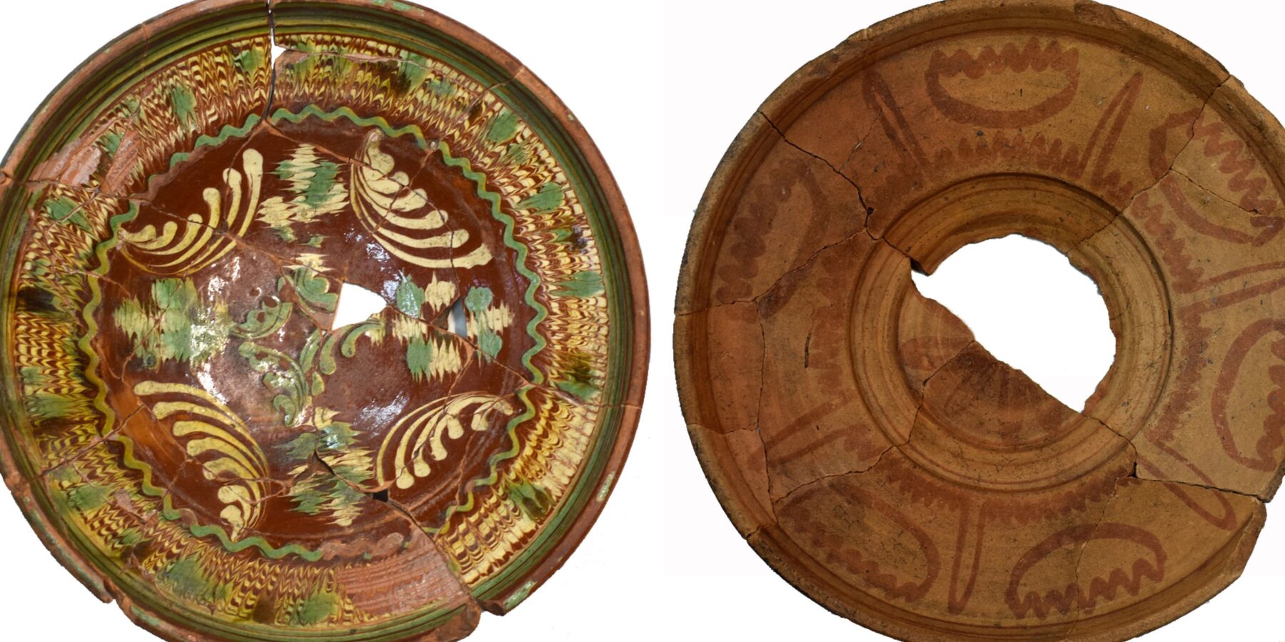 Більшість мисок походила з заповнення котловану закинутої споруди-напівземлянки, в який мешканці черкаського Подолу скидали побутове сміття (переважно – це уламки битого керамічного посуду). Серед тисяч фрагментів кераміки вдалося віднайти й повністю або частково склеїти понад два десятка мальованих мисок виробництва українських гончарів ранньомодерної доби. Деякі з них прикрашені монохромною опискою, а більшість – підполивним різноколірним розписом. Техніка нанесення орнаменту доволі різноманітна: ріжкування, фляндрівка, мармурування.