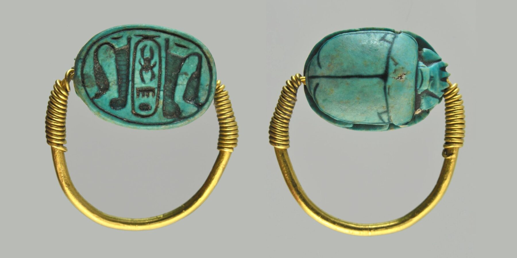 На щитку золотого перстня у вигляді жука-скарабея розміщено картуш з тронним іменем фараона Тутмоса ІІІ (Менхеперура).
