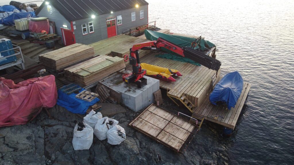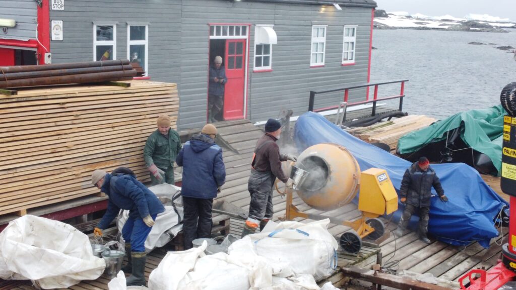 - закінчили реконструкцію додаткового причалу “джеті”, який був розбитий штормом. Більшість робіт виконали ще минулого сезону, а зараз повністю фіналізували цей проєкт. На посилені балки, змонтовані торік, наростили опорні конструкції, збільшили виліт поверхні причалу, збудували стіну для захисту основних опор від айсбергів. Також вперше виготовлено та змонтовано опору переносного освітлення для “джеті”.