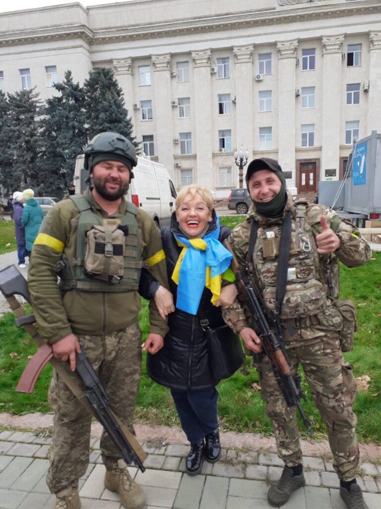 — Я не вирвалася. Я залишалася там аж до звільнення міста — 11.11.22. Але більшість дізналася про звільнення лише 12-го числа. Інтернету не було. Коли росіяни відступали, вони зруйнували телевежу, зв’язок зник. Усе, все зруйнували. Світла й води в Херсоні не було аж до кінця листопада включно. Інтернет з’явився лише в центрі міста, не було світла і ми заряджали свої телефони тільки від невеликої кількості генераторів, які ставили біля магазинів: це створювало величезні черги…але Херсон звільнений – це було головне! Після звільнення Херсон стали обстрілювати з Лівого берега, з Олешок.