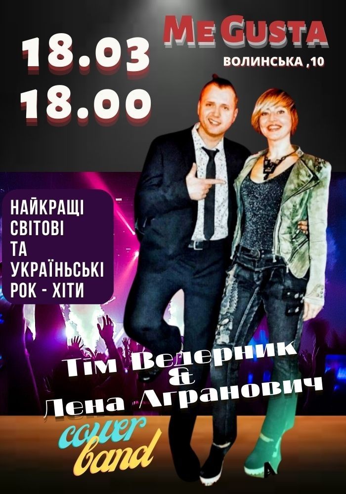 “Неперевершена Олена Агранович з соковитим блюзовим вокалом та Тiм Ведерник з гiтарою та вокальним драйвом не залишать серця слухачiв байдужими з World rock hits та українськими найкращими хiтами. Приходьте на дивовижне шоу, яке пiдкорить Вашi серця”, – зазначають організатори заходу.