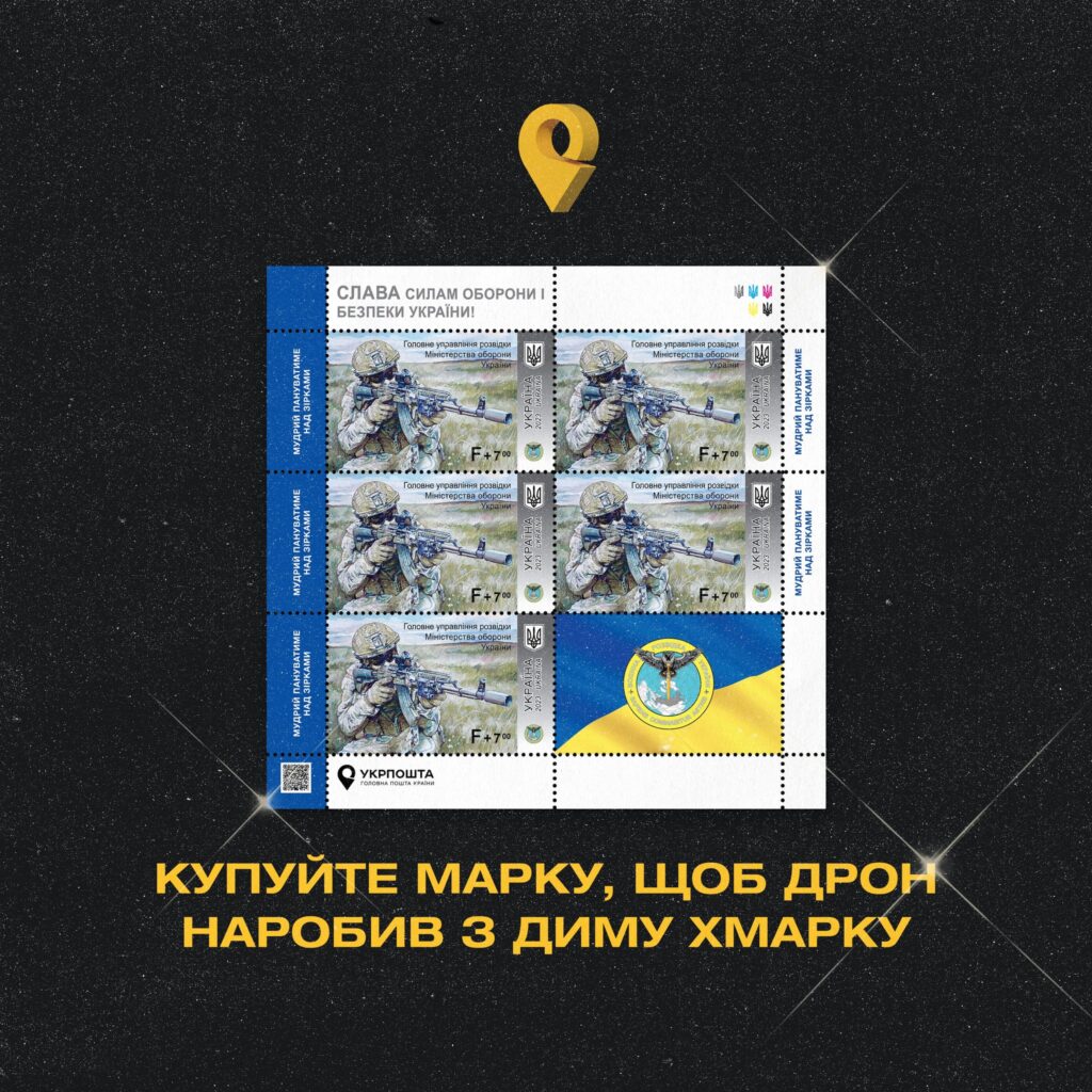 Укрпошта закликає купляти поштові марки «Головне управління розвідки Міністерства оборони України» серії «Слава Силам оборони і безпеки України!», щоб зіьрати гроші на придбання морського дрону, пише Успіх in UA.