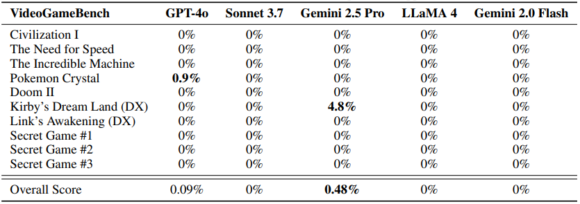 Науковці перевірили моделі Gemini 2.5 Pro, GPT-4o, LLaMa 4, Gemini 2.0 Flash і Claude 3.7 Sonnet у 10 популярних 2D-іграх кінця 90-х — від Super Mario до Age of Empires. Умови: доступ лише до відеопотоку гри та короткий опис управління й цілі.