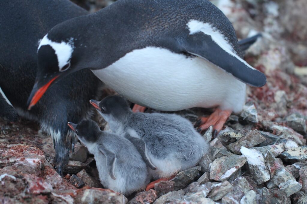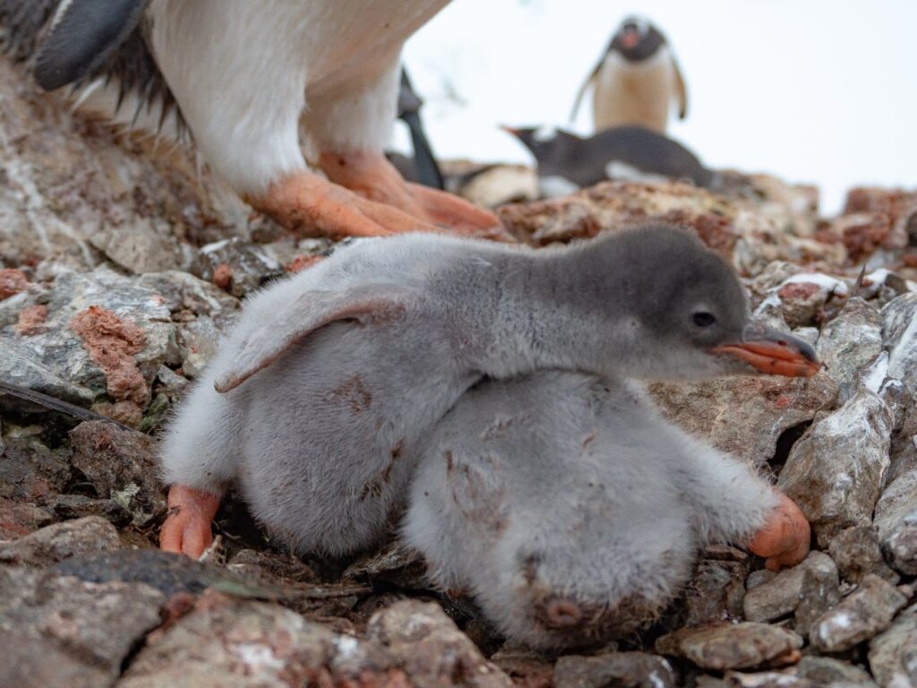“Вони зараз у сіренькому пушку, дуже смішні й незграбні, ховаються під батьків, але активно звідти пищать”, – розповідають українські полярники.