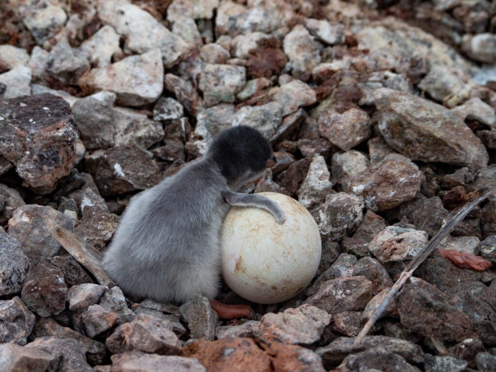Нагадуємо, що ці птахи висиджують яйця та пташенят по черзі. Доки один з партнерів залишається на гнізді, інший вирушає в океан полювати на криля, а через кілька днів вони змінюються.
