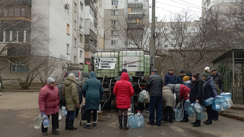 «У квітні минулого року росіяни перебили водопровід, з якого місто отримувало питну воду. Відтоді доступ миколаївців до води забезпечують волонтери, наша команда — серед них. Спочатку на базі Гончаренко центру ми збирали баклажки, наповнювали їх водою та везли у Миколаїв. Згодом ми вирішили масштабувати доставку води — дістали діжки, і возили вже їх. Дізналися, що возити воду можна також зі свердловин біля Миколаєва. Словом, хапалися за кожну можливість допомогти жителям Миколаєва», — діляться у Гончаренко центрі Одеса (Дерев’янко).