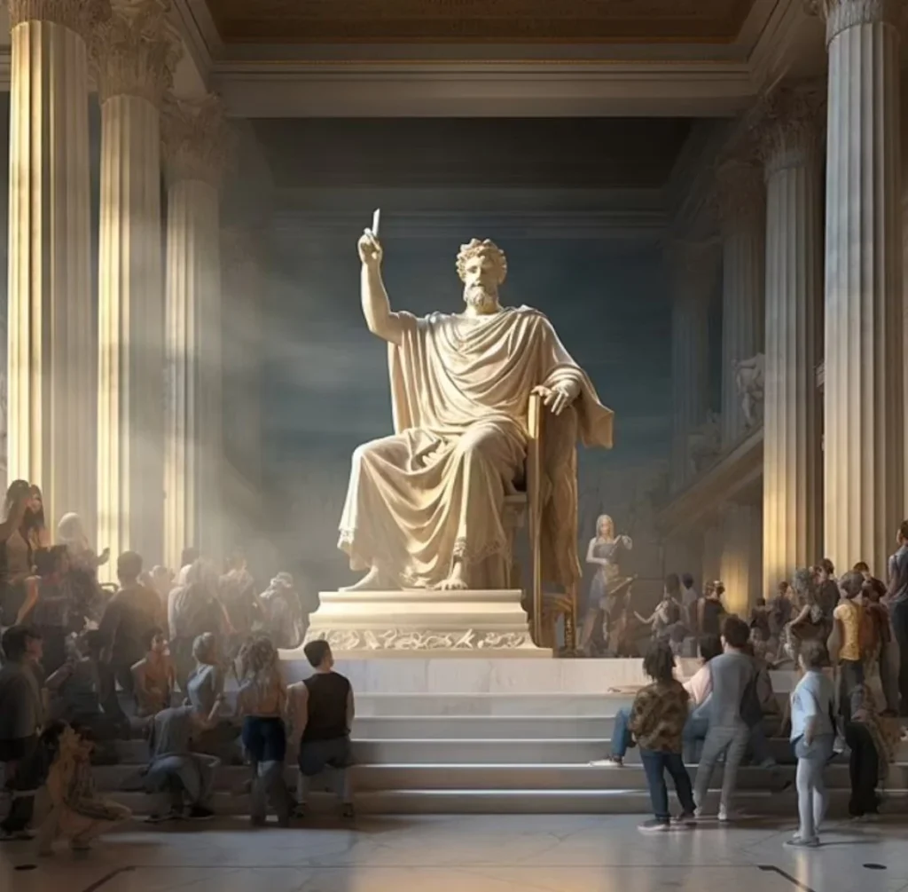 Саме такою статую Зевса зобразив штучний інтелект. Щоправда, без натовпів туристів біля її підніжжя.