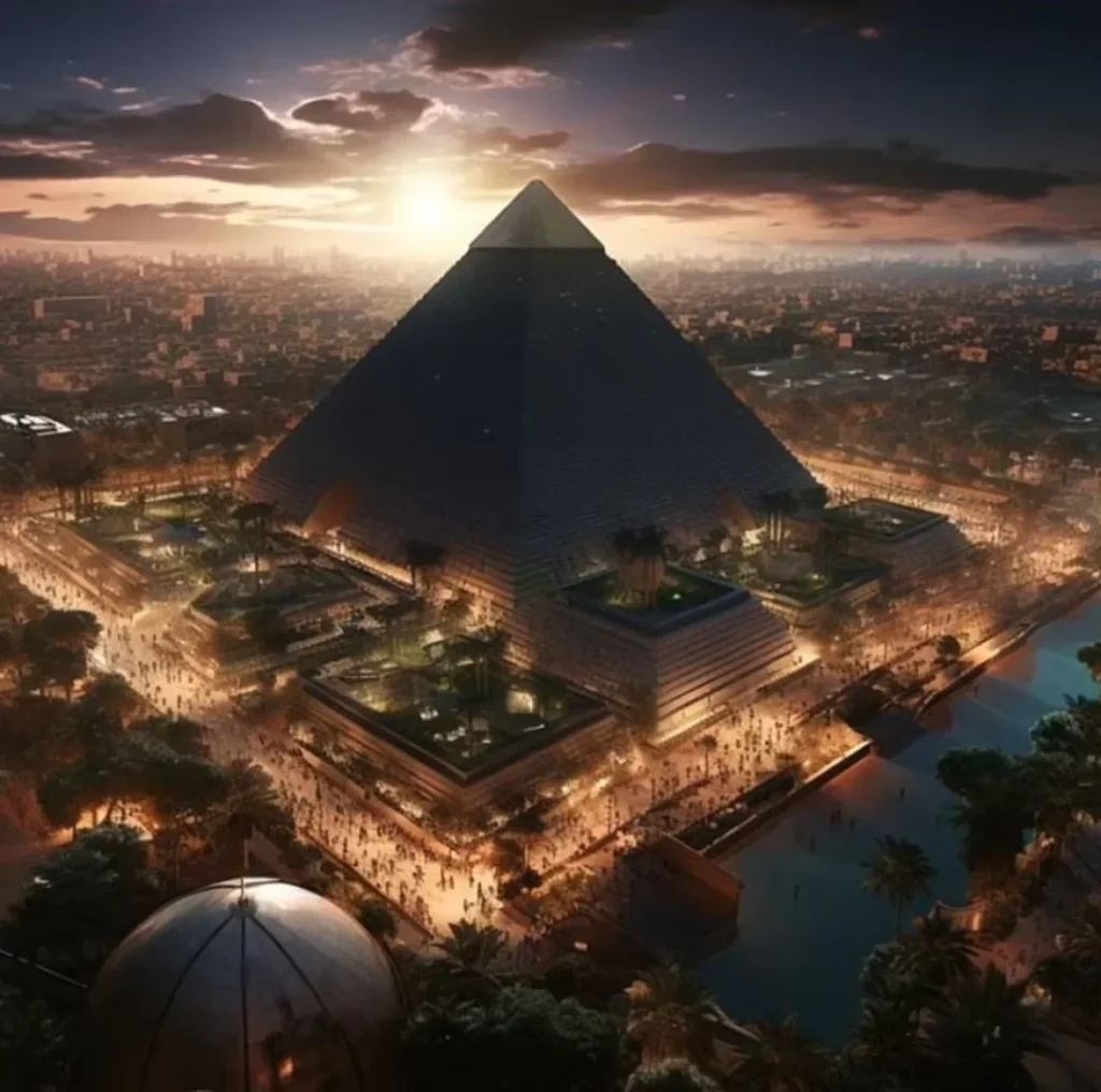 Попри те, що піраміда Хеопса збереглася до наших днів, штучний інтелект відтворив її первісний вигляд, коли на вершині піраміди сяяло навершя з білого вапняку. З плином років ця частина піраміди була загублена.