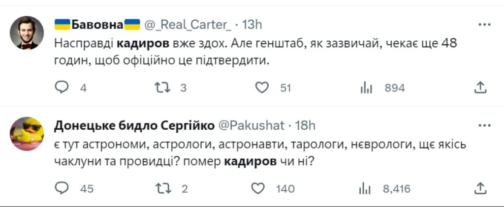 Варто зазначити, що ще кілька місяців тому у пресі з’явилися чутки про тяжку хворобу кадирова. Чеченський лідер мав дивний вигляд, сильні набряки і говорив незрозуміло. Вже тоді йшлося про проблеми з нирками у путінського фаната.
