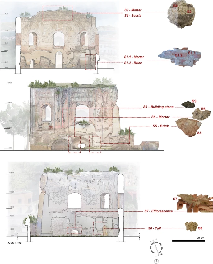 Дослідники простежили особливе поєднання геоматеріалів, що забезпечило міцність споруди в зоні активного вулканізму. Вони відібрали дев’ять зразків розчинів, цегли та вулканічних включень для детального мікроскопічного аналізу, повідомляє cikavosti.com.