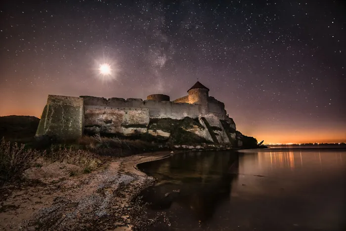 - Євген Самученко — містичний нічний пейзаж фортеці Аккерман у Білгород-Дністровському, Україна, знятий під місячним сяйвом.