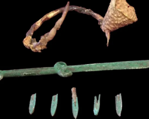 Під час дослідження поховання на кладовищі Карабіє фахівці знайшли останки воїна у круглому земляному насипі, покритому кам’яними плитами. Поруч лежали меч, п’ять стріл і залізна сережка, загорнута в тонку золоту фольгу.