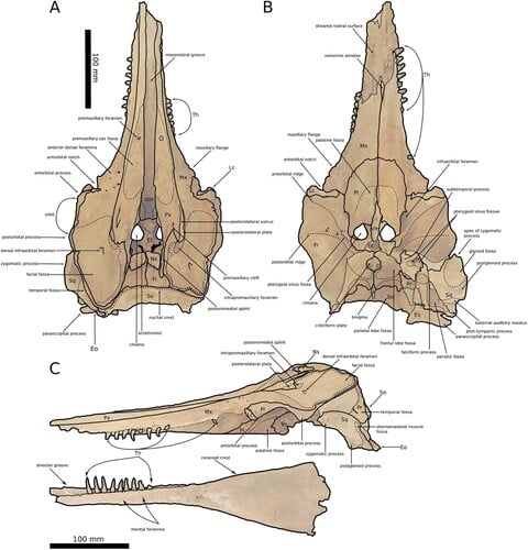 Прекрасно збережений екземпляр черепа одного з раніше невідомих одонтоцетів, здається, розкрив секрет цього дивного розташування зубів. Кістки виявили вже давно в долині Хакатарамеа (у період з 22 по 27 мільйонів років тому значна частина території Нової Зеландії занурювалася в море), вони зберігалися в Геологічному музеї Отаго. Тільки зараз їх описали вчені з Університету Отаго (Нова Зеландія).