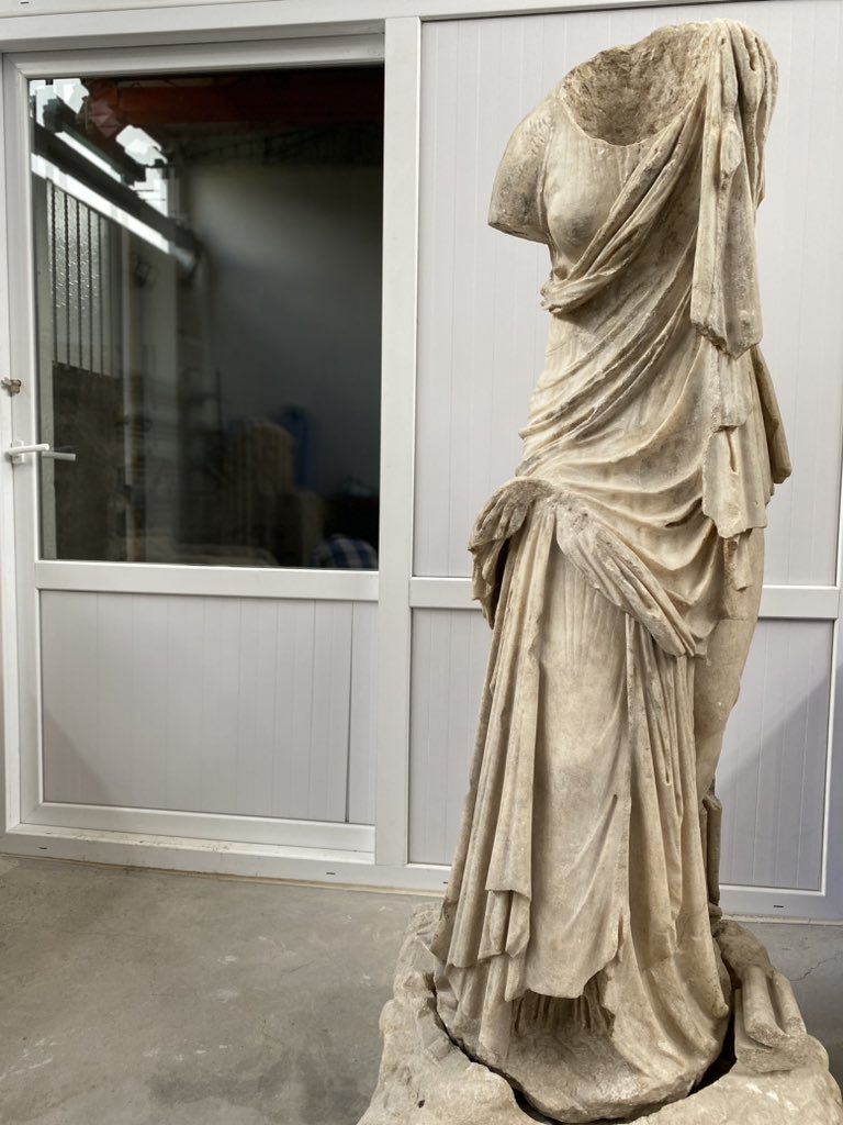 Статую та постамент знайшли під час розкопок усередині римської лазні в Стратонікеї. Однак голова та руки скульптури переважно були відсутні у знахідках.