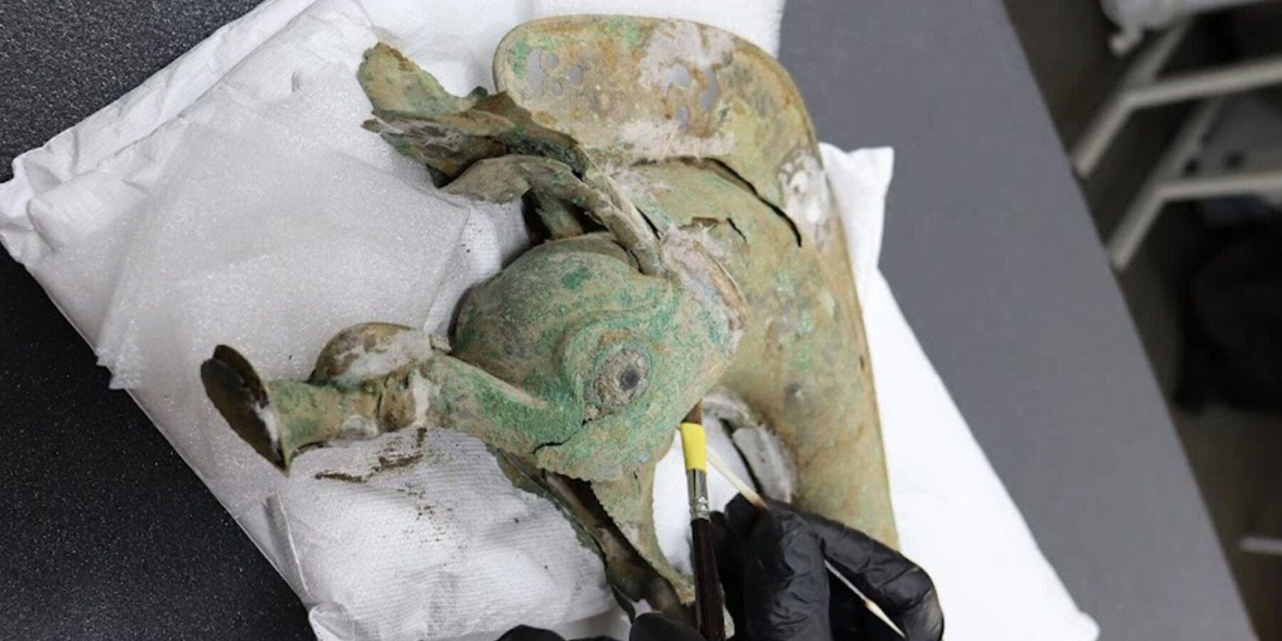 Серед артефактів — майже повністю збережений бронзовий карнікс (бойова труба з головою тварини), уламки ще одного інструмента, а також бронзова голова кабана, що ймовірно була частиною військового штандарта. До колекції входять також п’ять умбонів (центральних елементів щитів) та загадковий залізний предмет, функція якого поки що невідома, повідомляє heritagedaily.com.
