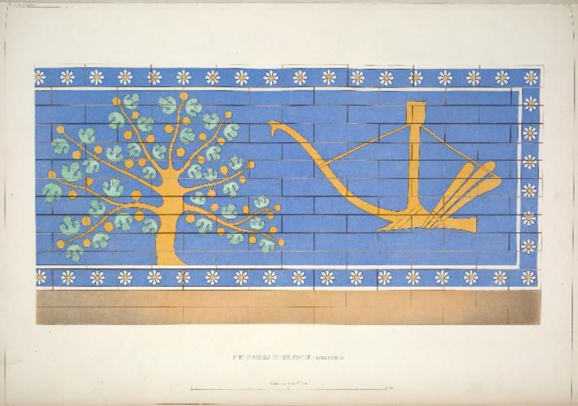 Стародавні символи, знайдені в 2700-річному храмі в місті Дур-Шаррукін в сучасному Хорсабаді в Іракі включають зображення лева, орла, бика, фігового дерева та плуга.