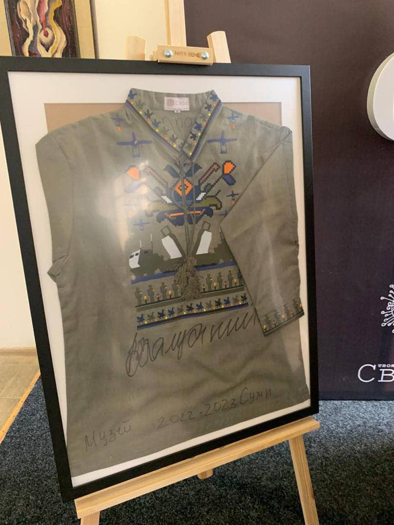 У міській галереї Сум можна побачити вишиванку, підписану Головнокомандувачем ЗСУ Валерієм Залужним, пише Успіх in UA.
