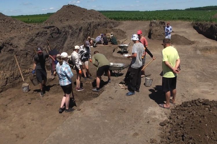 Розкопки студенти почали п’ятого червня. І тільки коли вони заглибилися в цю землю на два метри, вони виявили перші суттєві знахідки. Це був людський кістяк, якому приблизно дві з половиною тисячі років. Понад дві тисячі років і кургану, каже Віталій Гуцал.