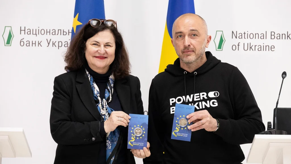 Голова Національного банку України Андрій Пишний спільно з Послом ЄС в Україні, Головою Представництва ЄС в Україні Катаріною Матерновою презентували пам’ятну монету “День Європи”, пише Успіх in UA.