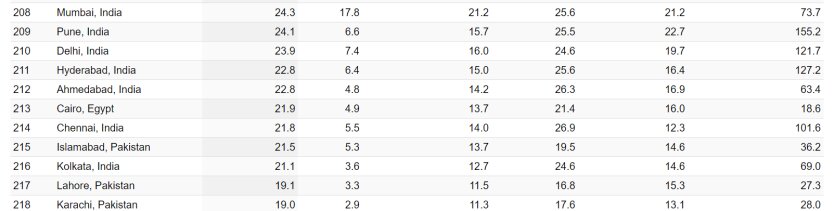 • Лахор, Пакистан (19,1) – 217 місце,