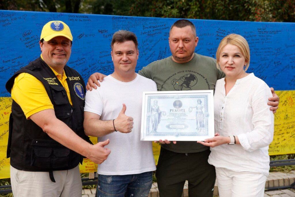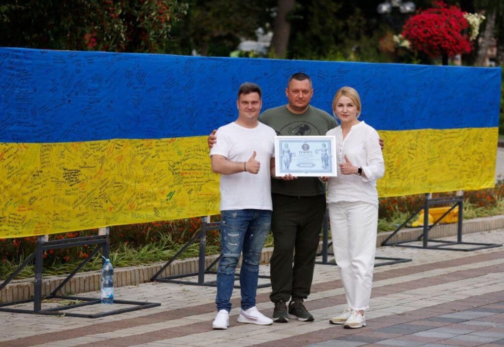 Учасники заходу підняли найдовший прапор України на воді аби залишити це у Книзі Рекордів України. Довжина стяга – 156 метрів.