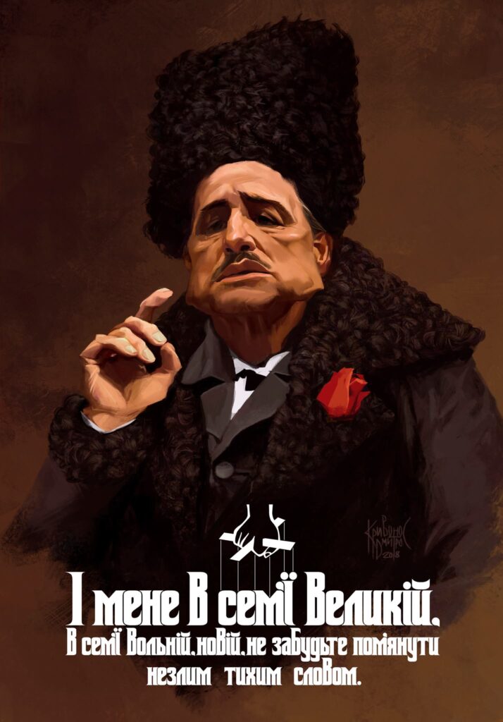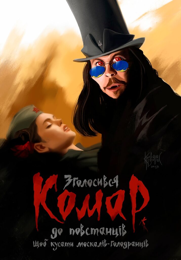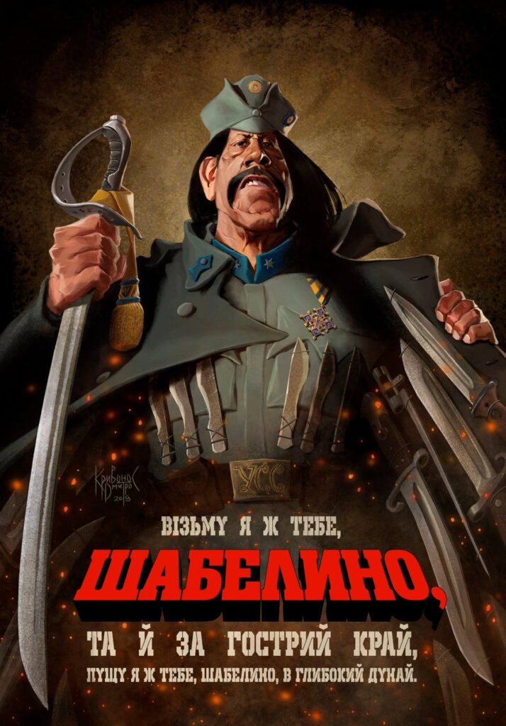 Варто зазначити, що майже всі герої ілюстрацій автора переодягнені у вишиванки. До кожного постеру Дмитро підбирає слова із українських народних пісень, які коротко характеризують сюжет стрічки.