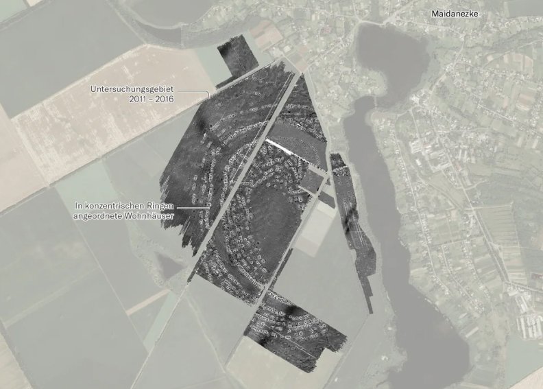 Археолог з Кільського університету Йоганнес Мюллер з 2011 року з групою колег досліджує поселення-гіганти в Україні, зокрема Майданецьке, за сучасною назвою сусіднього села у Черкаській області. За 10 кілометрів на захід від Майданецького розташоване ще одне величезне поселення:
